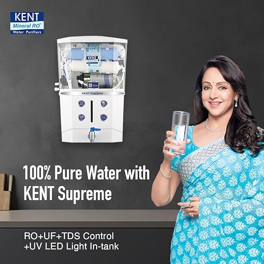 KENT Supreme RO Water Purifier | INR 1000 Off on Exchange | 4 Years Free Service | ISI Marked | Multiple Purification Process | RO + UF + TDS Control + UV LED Tank | 8L Tank | 20 LPH Flow