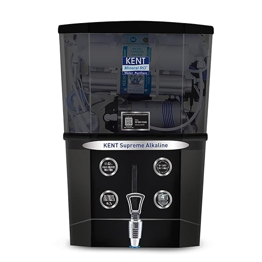 KENT Supreme Alkaline RO Water Purifier | INR 1000 Off on Exchange | 4 Years Free Service | ISI Marked | Multiple Purification Process | RO+UV+UF+Alkaline+TDS Control + UV LED Tank | 8L Tank | Black
