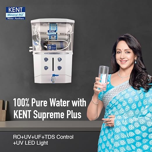 KENT Supreme RO Water Purifier | INR 1000 Off on Exchange | 4 Years Free Service | ISI Marked | Multiple Purification Process | RO + UF + TDS Control + UV LED Tank | 8L Tank | 20 LPH Flow